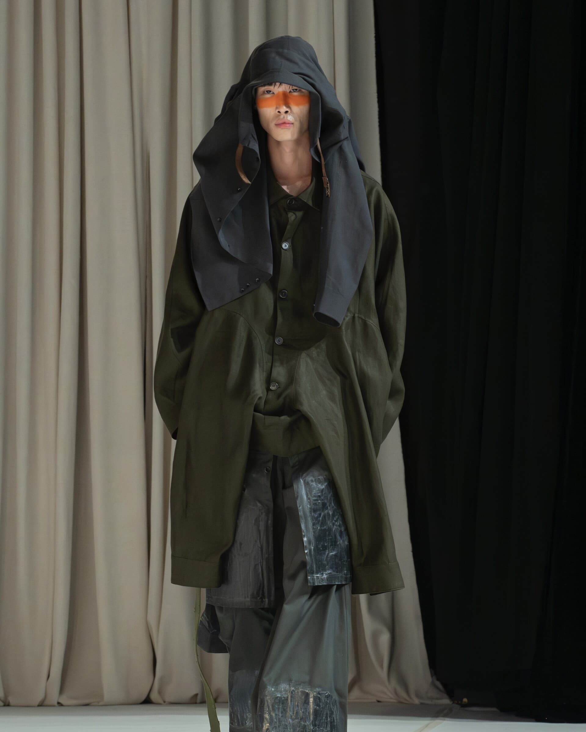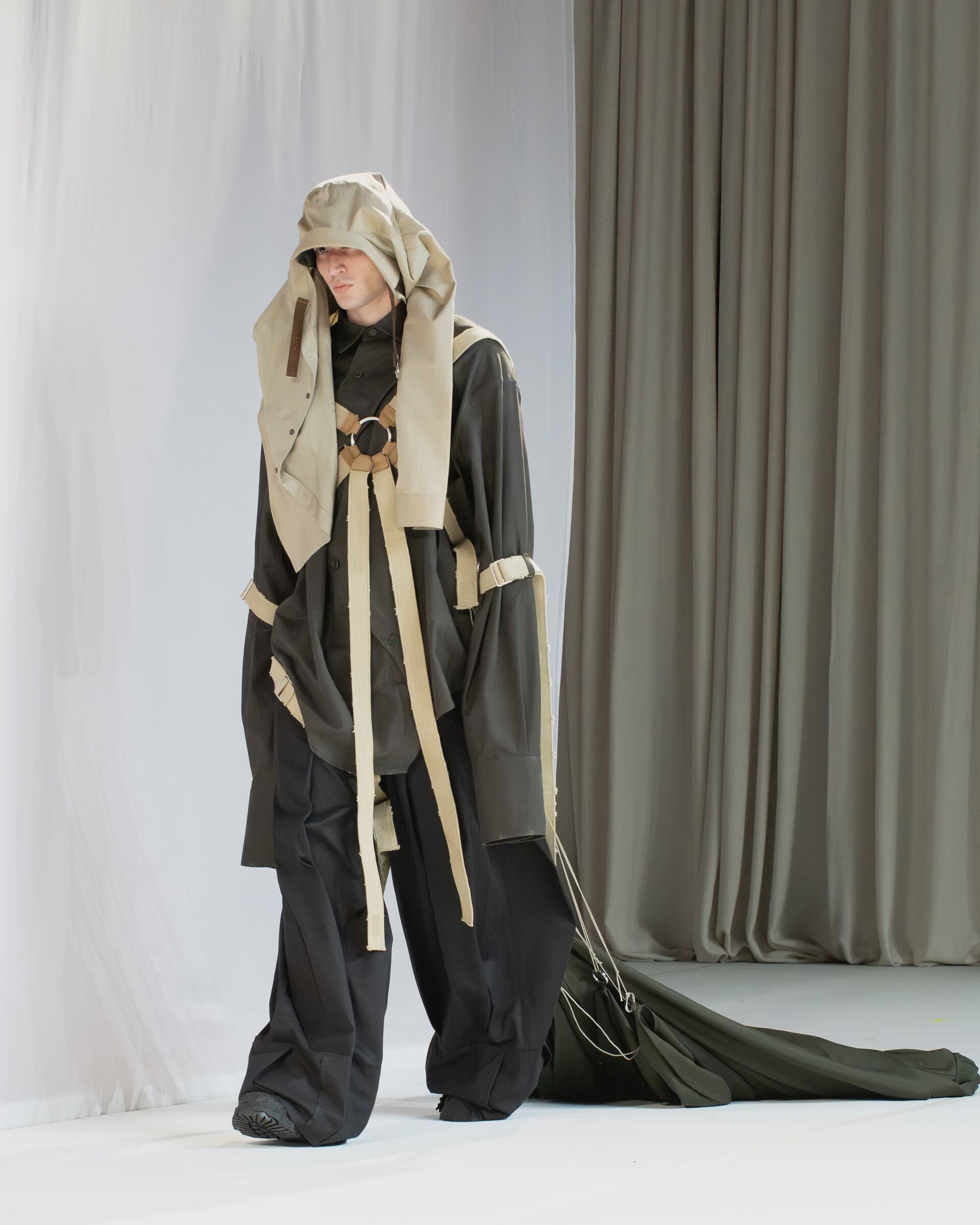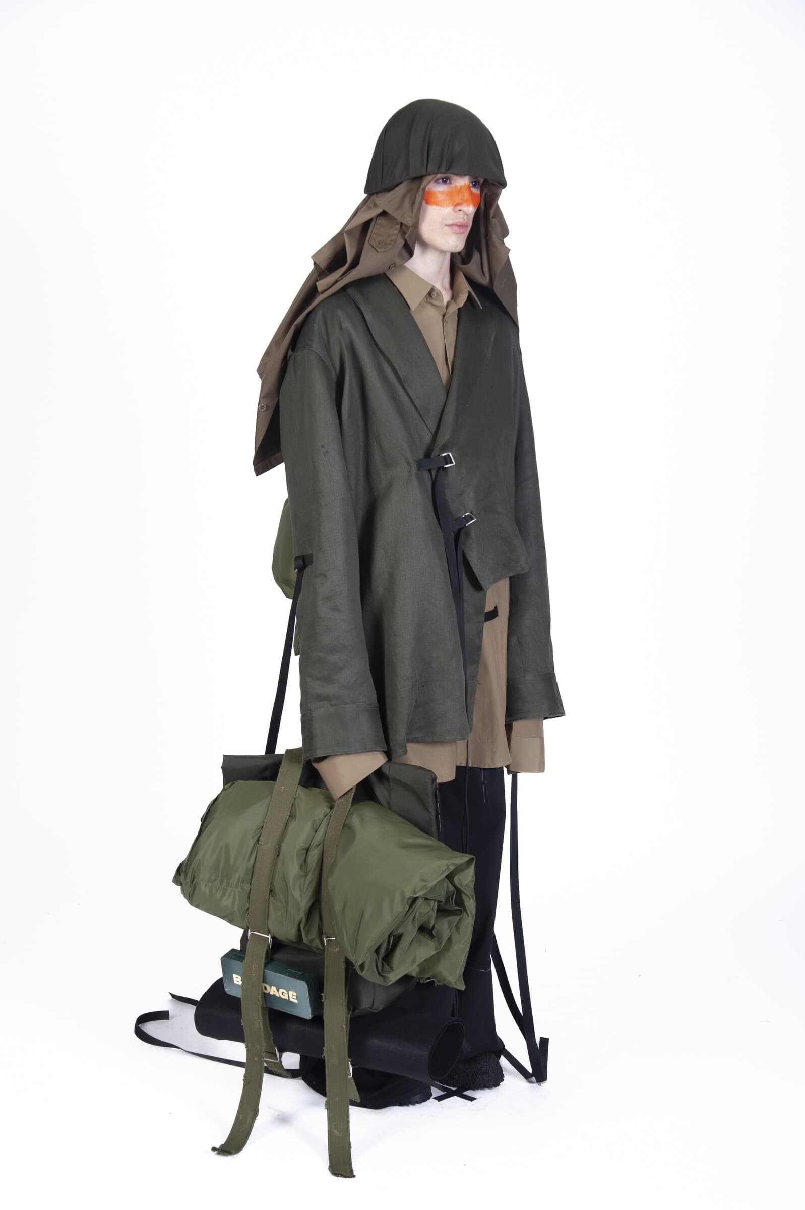 Coleção desenvolvida em dupla com Gabriel Pascolato para o FAAP Moda 2025, conquistando o terceiro lugar na competição. O projeto parte da reinterpretação da alfaiataria militar a partir dos poemas antiguerra de Wilfred Owen, propondo um deslocamento simbólico da indumentária bélica para um contexto de desgaste, ressignificação e resistência. A coleção investiga modelagens desestruturadas, construção de alfaiataria e adaptação de códigos militares para um novo enquadramento contemporâneo.