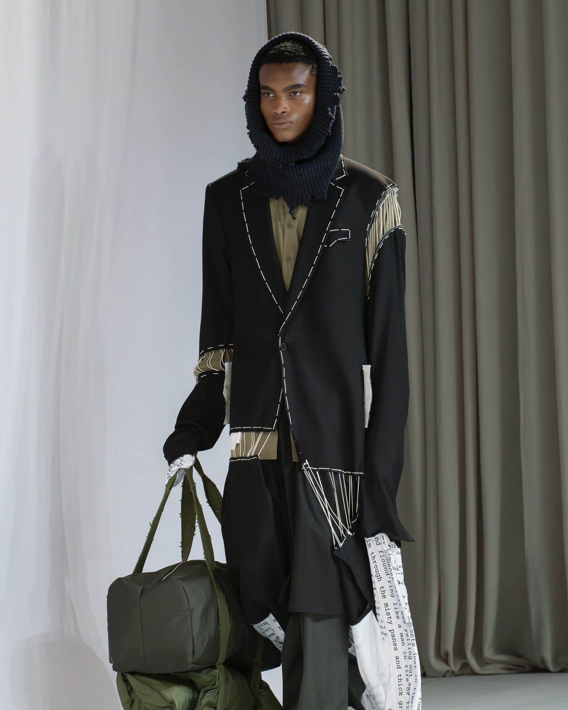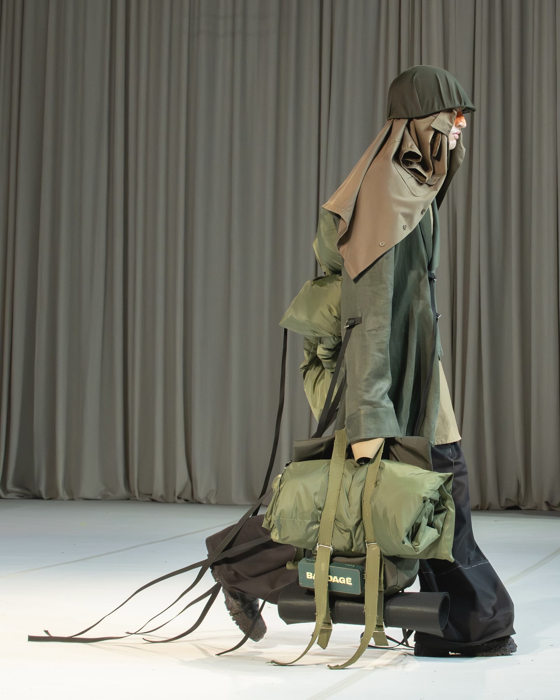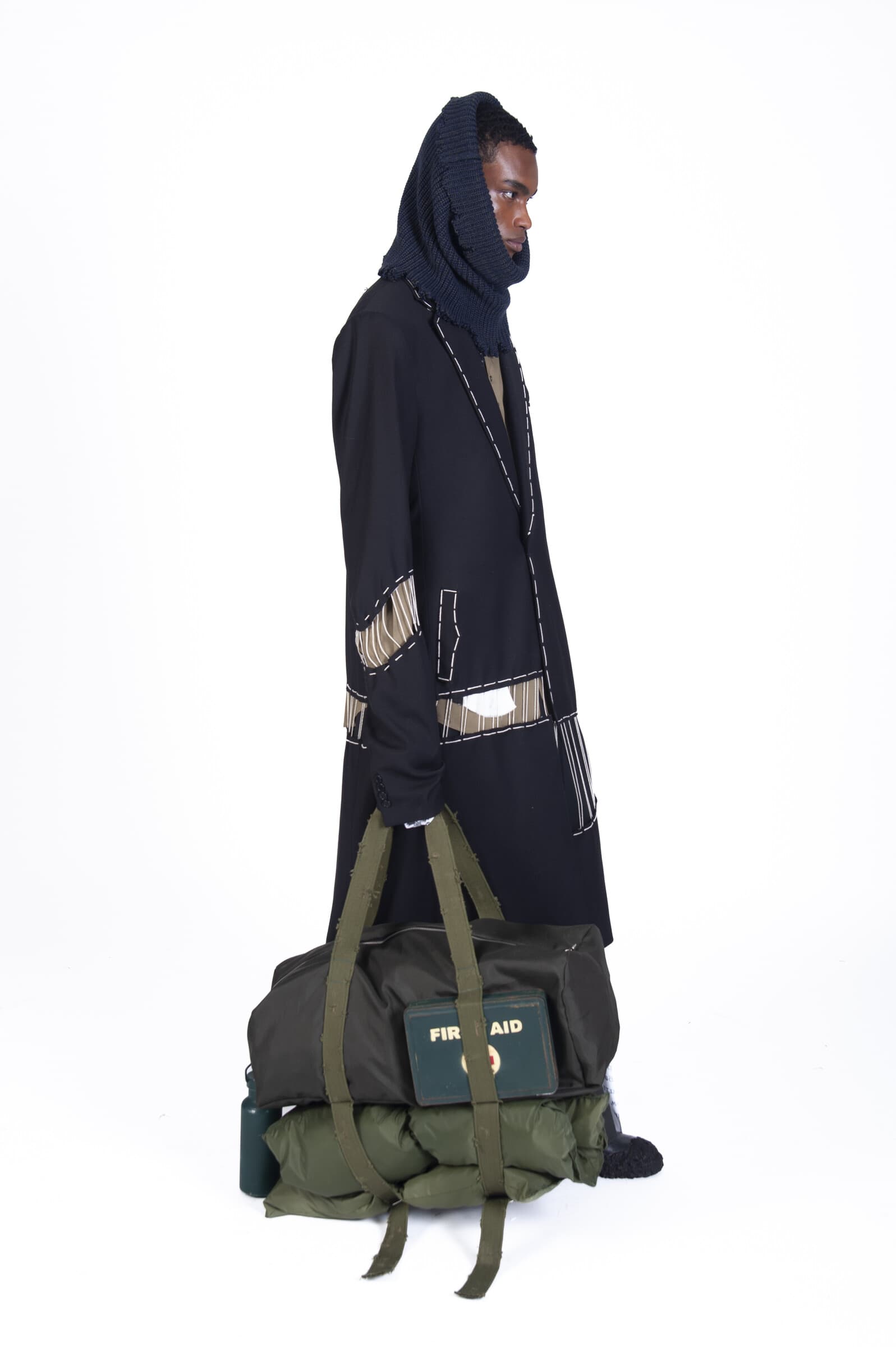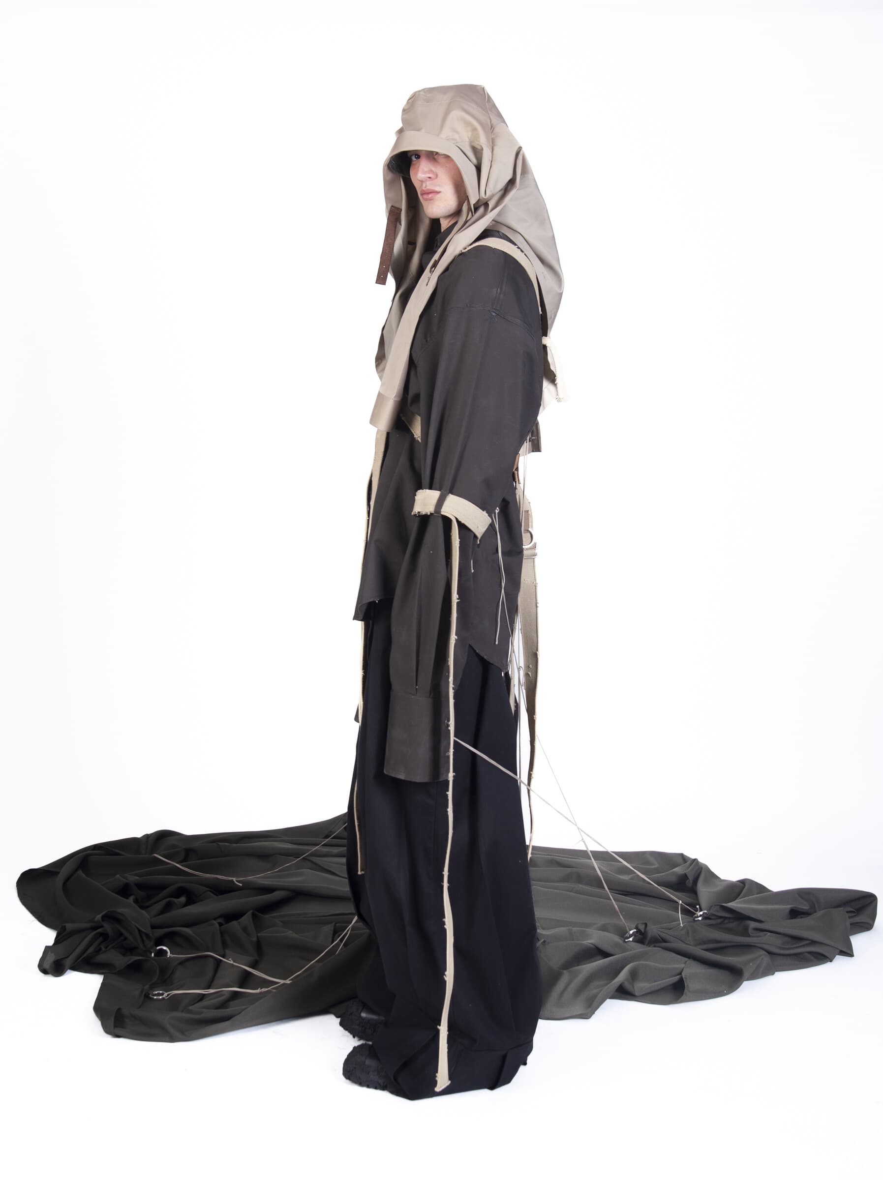 Coleção desenvolvida em dupla com Gabriel Pascolato para o FAAP Moda 2025, conquistando o terceiro lugar na competição. O projeto parte da reinterpretação da alfaiataria militar a partir dos poemas antiguerra de Wilfred Owen, propondo um deslocamento simbólico da indumentária bélica para um contexto de desgaste, ressignificação e resistência. A coleção investiga modelagens desestruturadas, construção de alfaiataria e adaptação de códigos militares para um novo enquadramento contemporâneo.