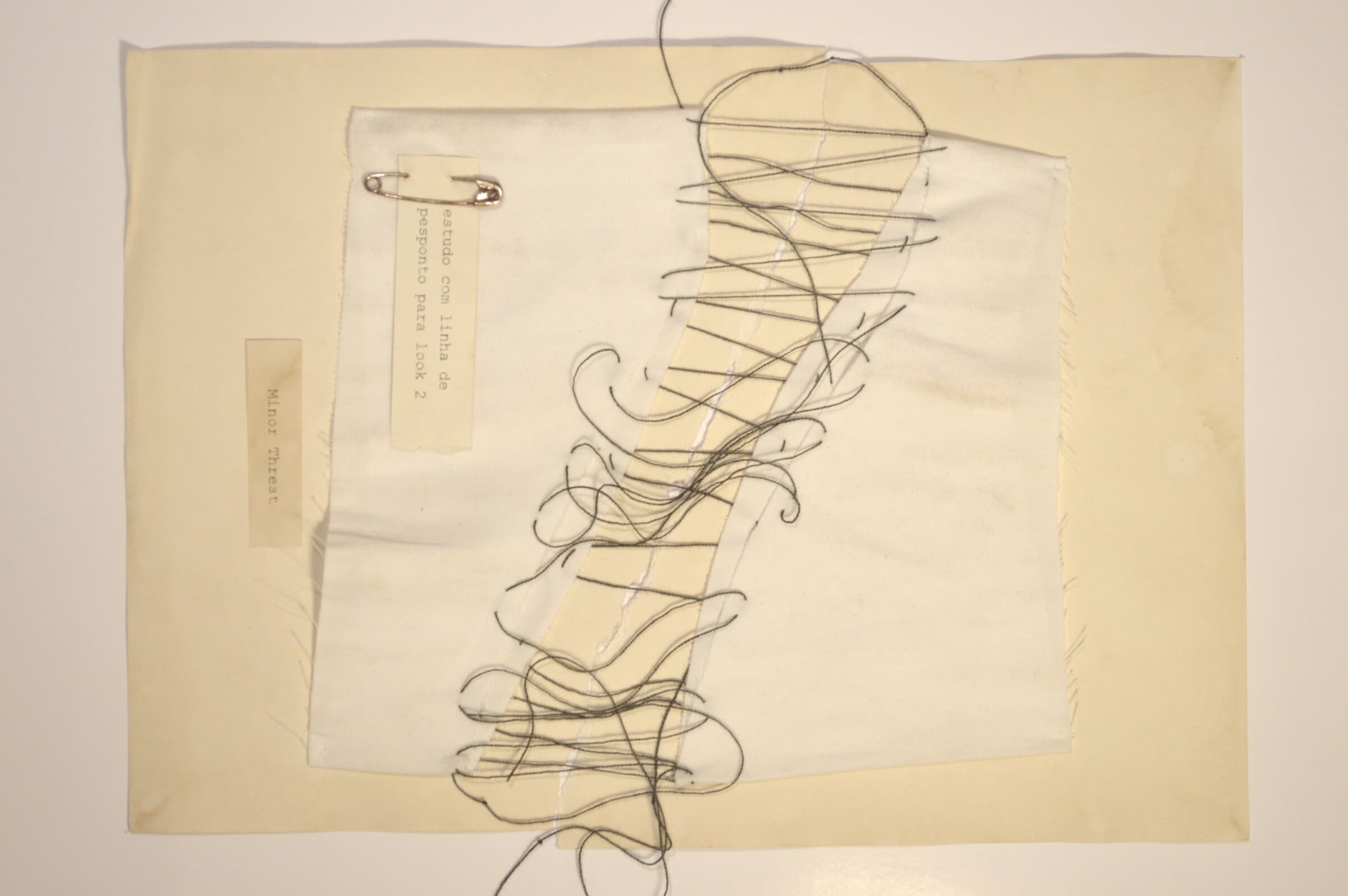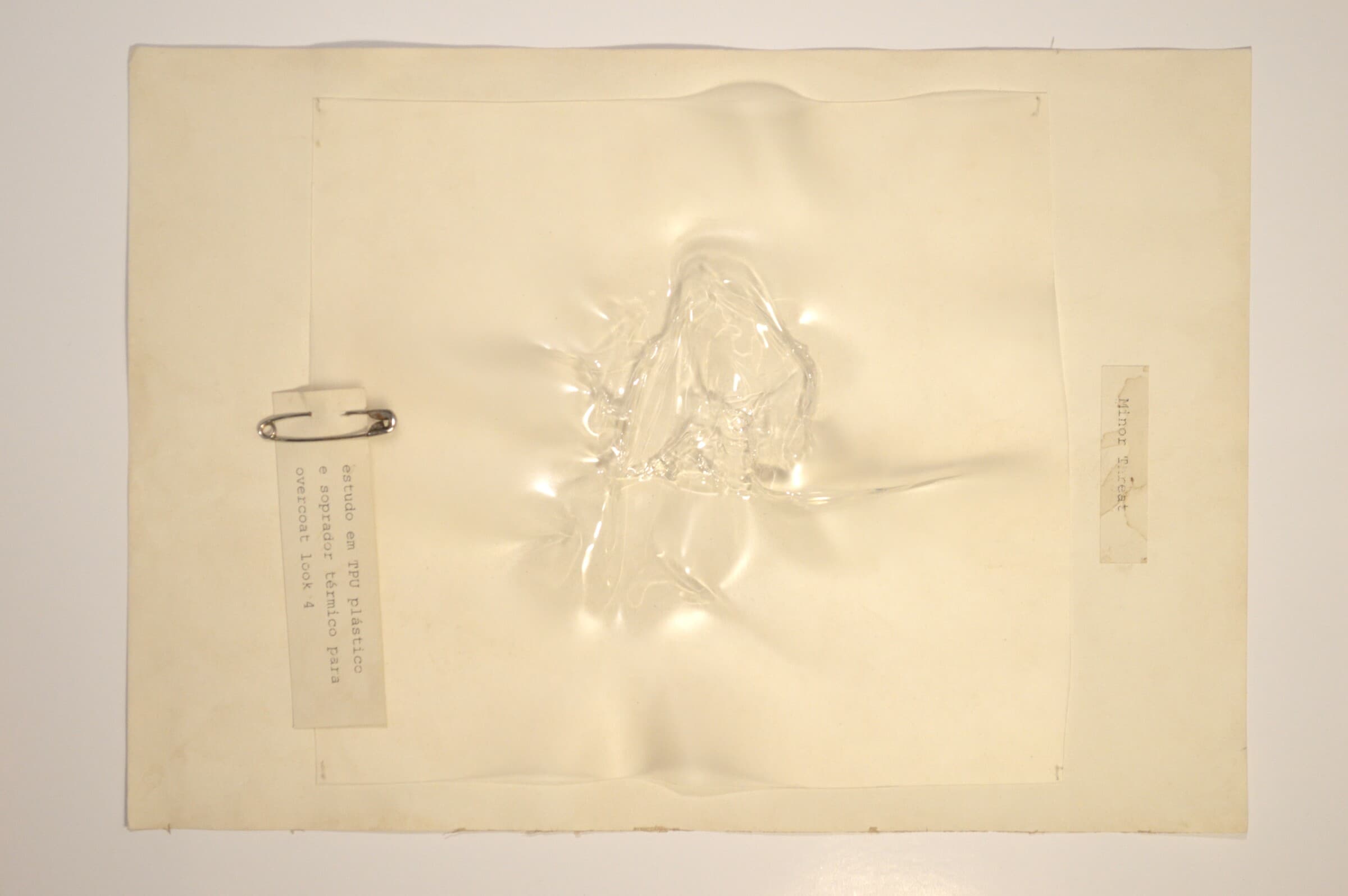 O processo criativo está apresentado em PDF e reúne o texto conceitual completo, croquis de desenvolvimento, estudo de materialidades e desenhos técnicos das peças. A documentação evidencia a construção da narrativa, a definição de silhuetas e a formalização técnica dos looks, incluindo detalhamento construtivo e representação plana, demonstrando domínio de desenho técnico aplicado à moda.